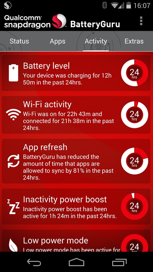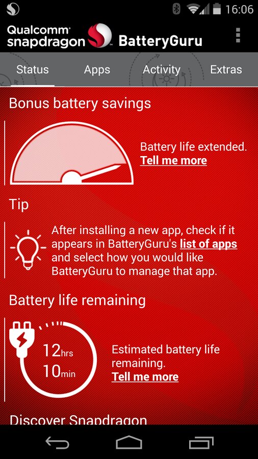 После короткого периода обучения и отслеживания использования пользователем аппарата (2-4 дня) Snapdragon BatteryGuru сообщает что готова продлить жизнь батареи и улучшить пользовательский опыт. Snapdragon BatteryGuru продолжает работать в фоне стараясь глубже понять пользователя и еще улучшить со временем опыт пользования смартфоном.