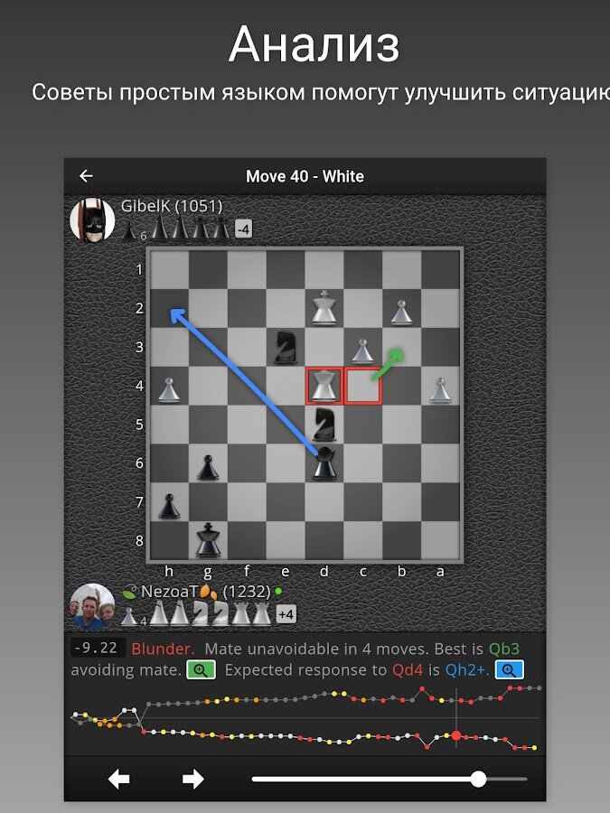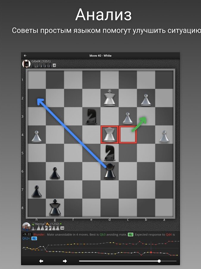 - Возможность посмотреть на партии вашего противника, и на партии противников вашего противника.