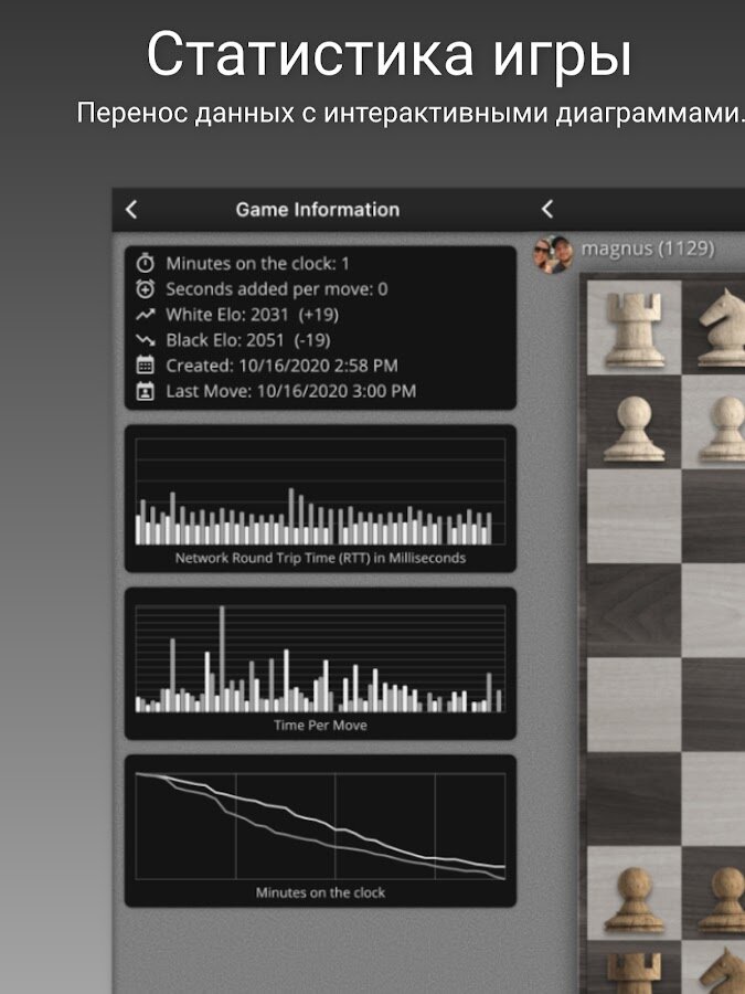 - Статистика — Рейтинг Эло, Выигрыши, Проигрышы, Ничьи.
