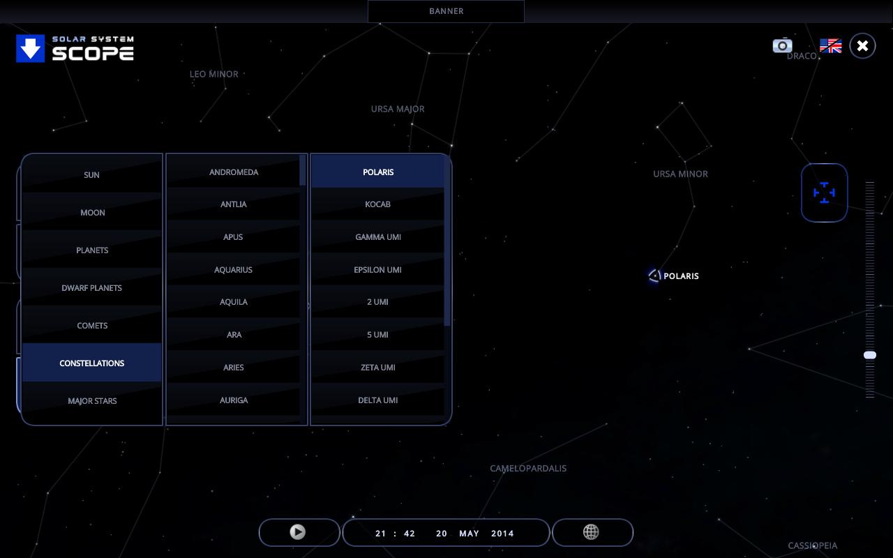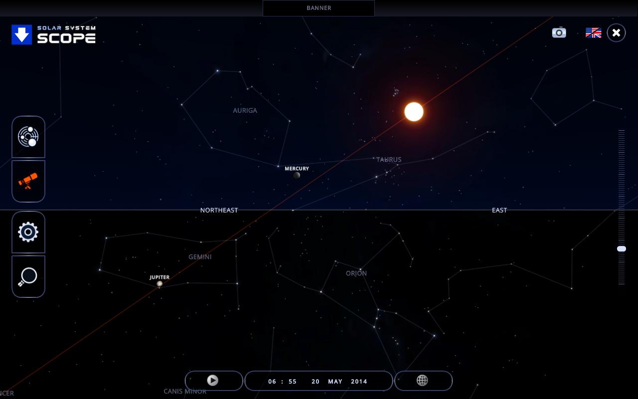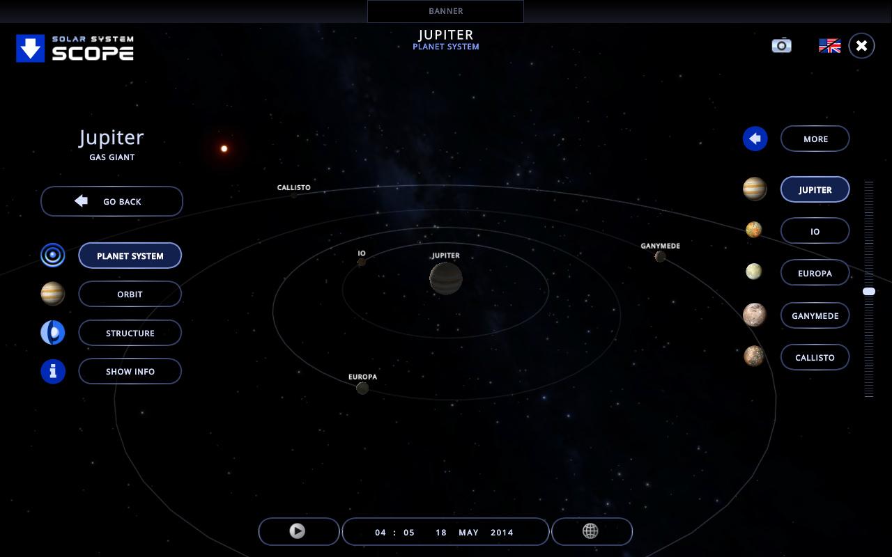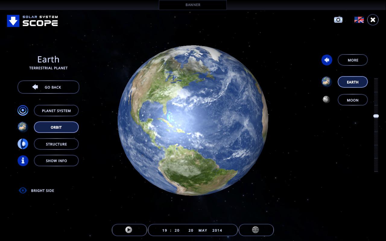 Приложение Solar System Scope представляет собой виртуальный 3D планетарий и обсерваторию для Android устройств. Пользователи смогут наблюдать за положением планет и планетарных орбит в режиме реального времени, направляя устройство на небо — определять космические объекты расположенные в фокусе. На схеме отображены реалистичные размеры планет и расстояний между ними. Возможен просмотр дополнительной информации по космическим объектам (структура, ядро и прочее). Для удобства реализован расширенный поиск объектов. Благодаря Virtual Orrery возможен просмотр движения планет во времени. Solar System Scope позволяет настраивать интерфейс для более комфортного использования.