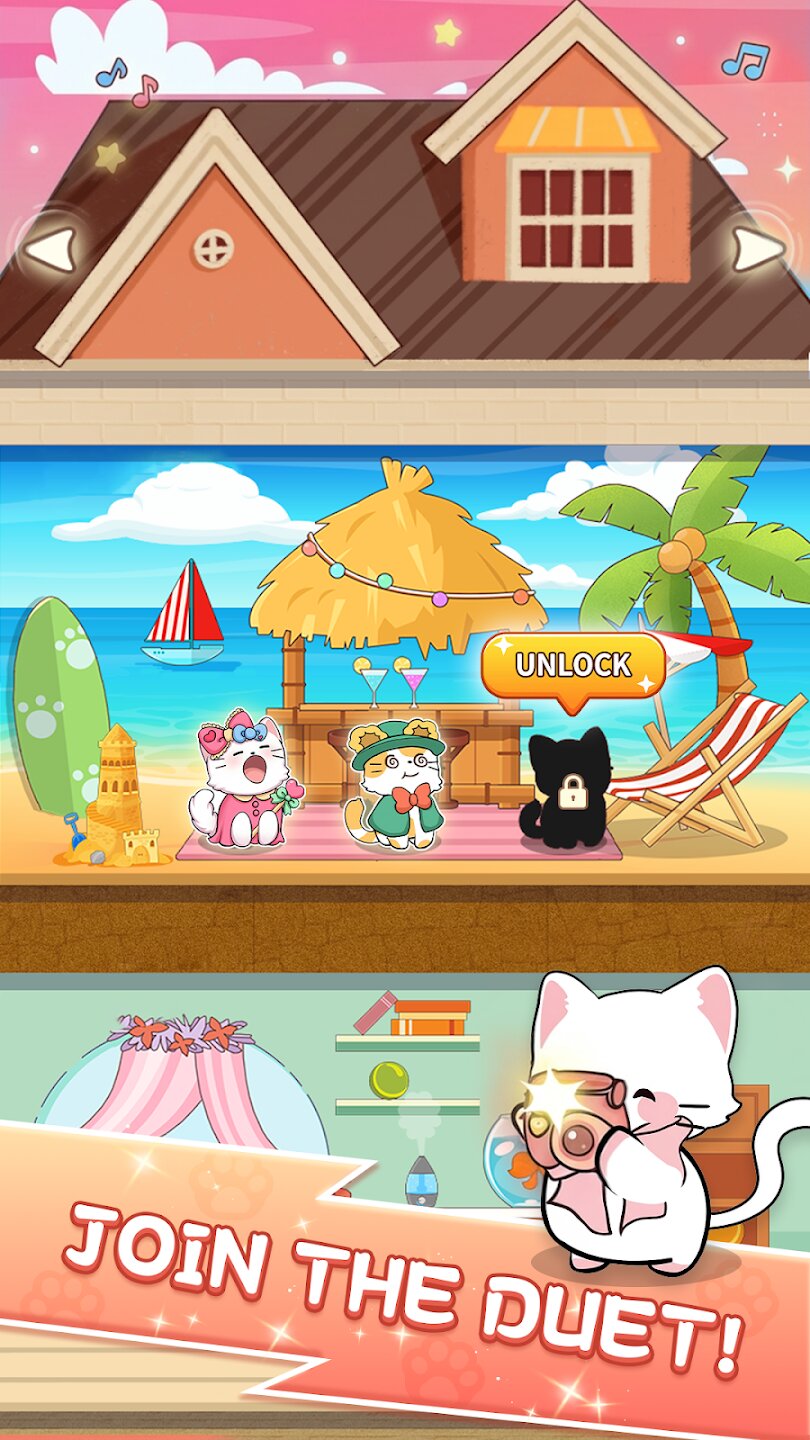 По мере прохождения зажигательного списка песен вы будете зарабатывать звезды, которые можно использовать для разблокировки и сбора различных милых кошек, каждая из которых имеет свой уникальный стиль и характер. Помимо ритмичного игрового процесса, вы можете спроектировать и украсить дом своей мечты для своих кошачьих друзей, создав уютное и персонализированное пространство. Благодаря регулярному добавлению новых треков и возможности играть в автономном режиме в любое время, Solo Cat предлагает постоянно обновляемое путешествие в мир музыки, кошек и творчества.