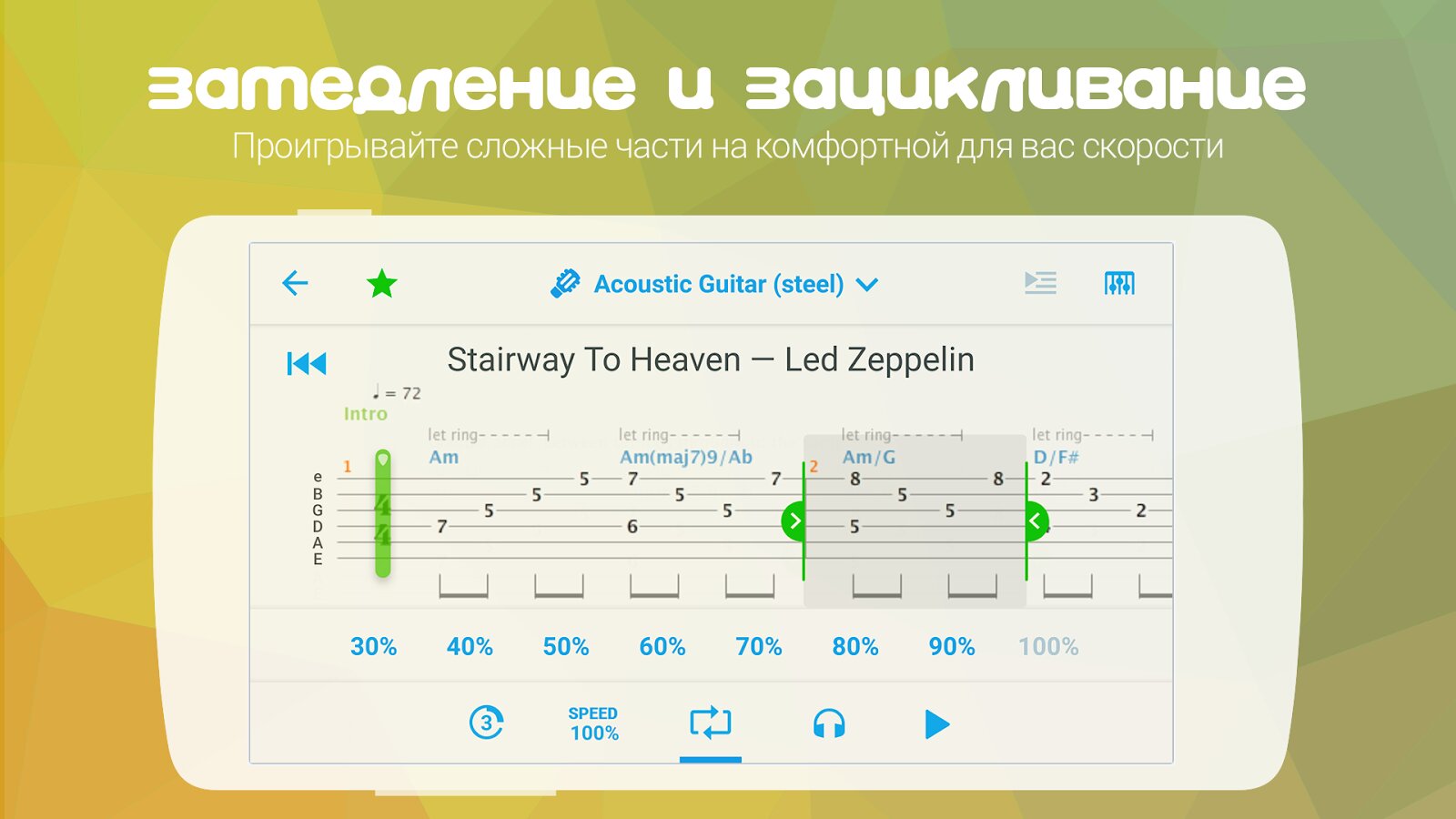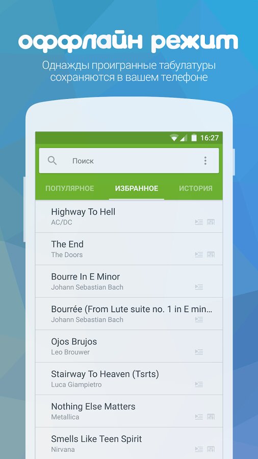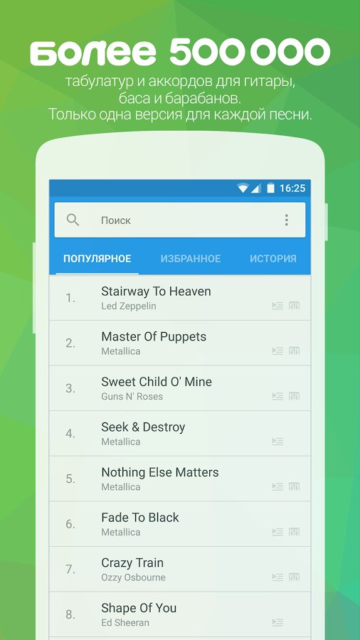 - Мобильный доступ к огромному каталогу табов и аккордов.