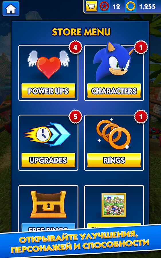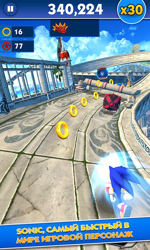 - ПОТРЯСАЮЩАЯ ГРАФИКА. Красочные детали мира Соника оживут на экране телефона и планшета: никогда еще бесконечная бегалка не была такой красивой!