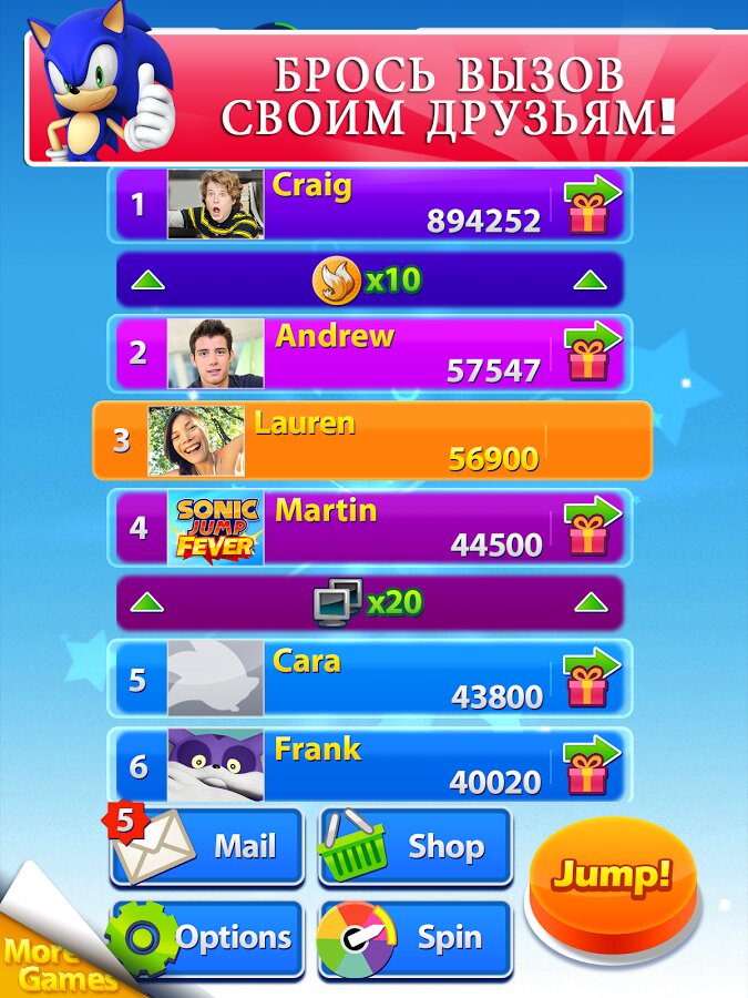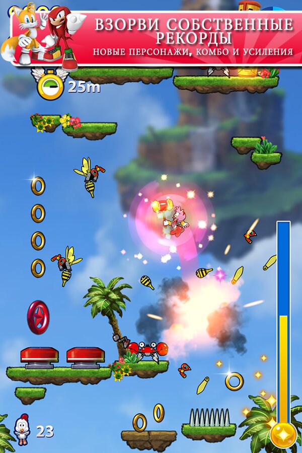 Подготовьтесь почувствовать лихорадку во взрывоопасной гонке на время! Отправьте Соника и его друзей в высокоскоростные хаотические прыжки. Играйте бесплатно и наберите огромные комбо, чтобы взорвать высокие баллы ваших друзей. Используйте ускорители, обновления уникальных способностей персонажей и домашних животных Чао, чтобы увеличить свой счет. Дайте волю лихорадке и двигайтесь на гипер- скорости! Попадите в новые места, такие как механические зоны! Играйте, как Sonic, Knuckles и множество других известных персонажей. Обновление свои уникальные движения и способности, чтобы помочь им вырасти до небес.