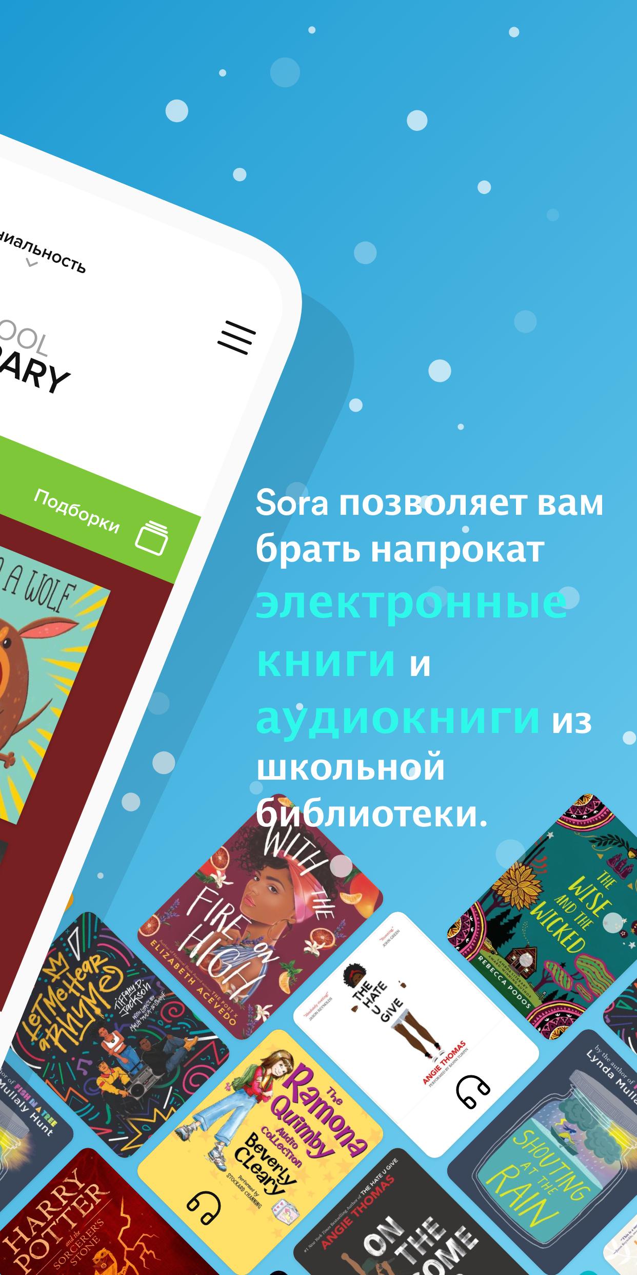 Sora позволяет вам брать напрокат электронные книги и аудиокниги из школьной библиотеки. Принцип работы очень прост. Необходимо всего лишь найти свою школу и зарегистрироваться. После этого вы сможете загружать или читать и слушать онлайн любимые книги и другие материалы на своем устройстве.
