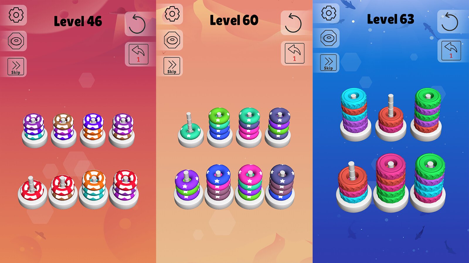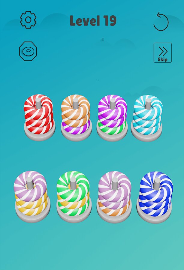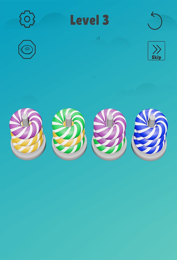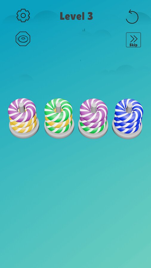 Главная задача в игре Sort Stack — это сложить кольца таким образом, чтобы на каждой стопке оказались кольца одного цвета. Перекладывайте кольца столько раз, сколько считаете нужным. Учтите, что одновременно можно перекладывать только одно кольцо. Соберите все силы и бросьте вызов своему мозгу.