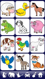 Включает 6 разделов, по 12 элементов в каждом разделе, представленных на экране привлекательными мультипликационными изображениями.