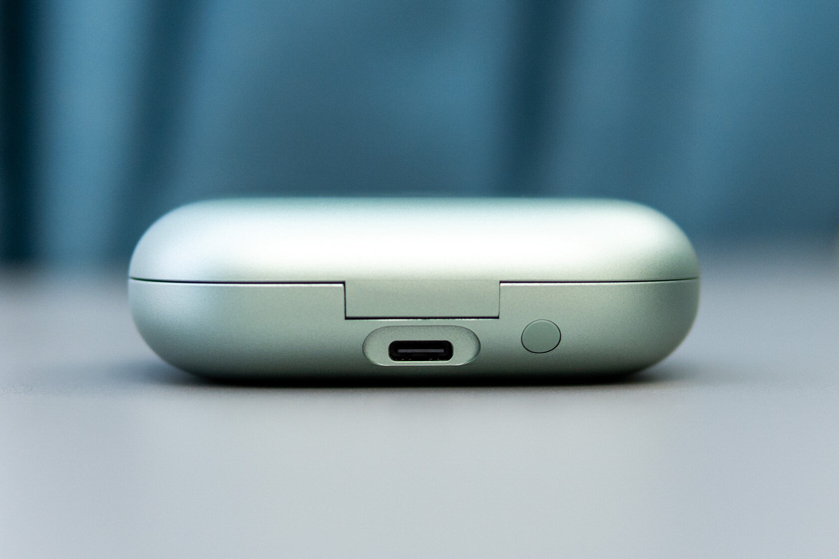Время работы на средней громкости с кодеком AAC — 10 часов. Кейс рассчитан на чуть более чем три полные зарядки наушников, то есть 42 часа воспроизведения музыки в сумме. Зарядка кейса по USB-C или без проводов.