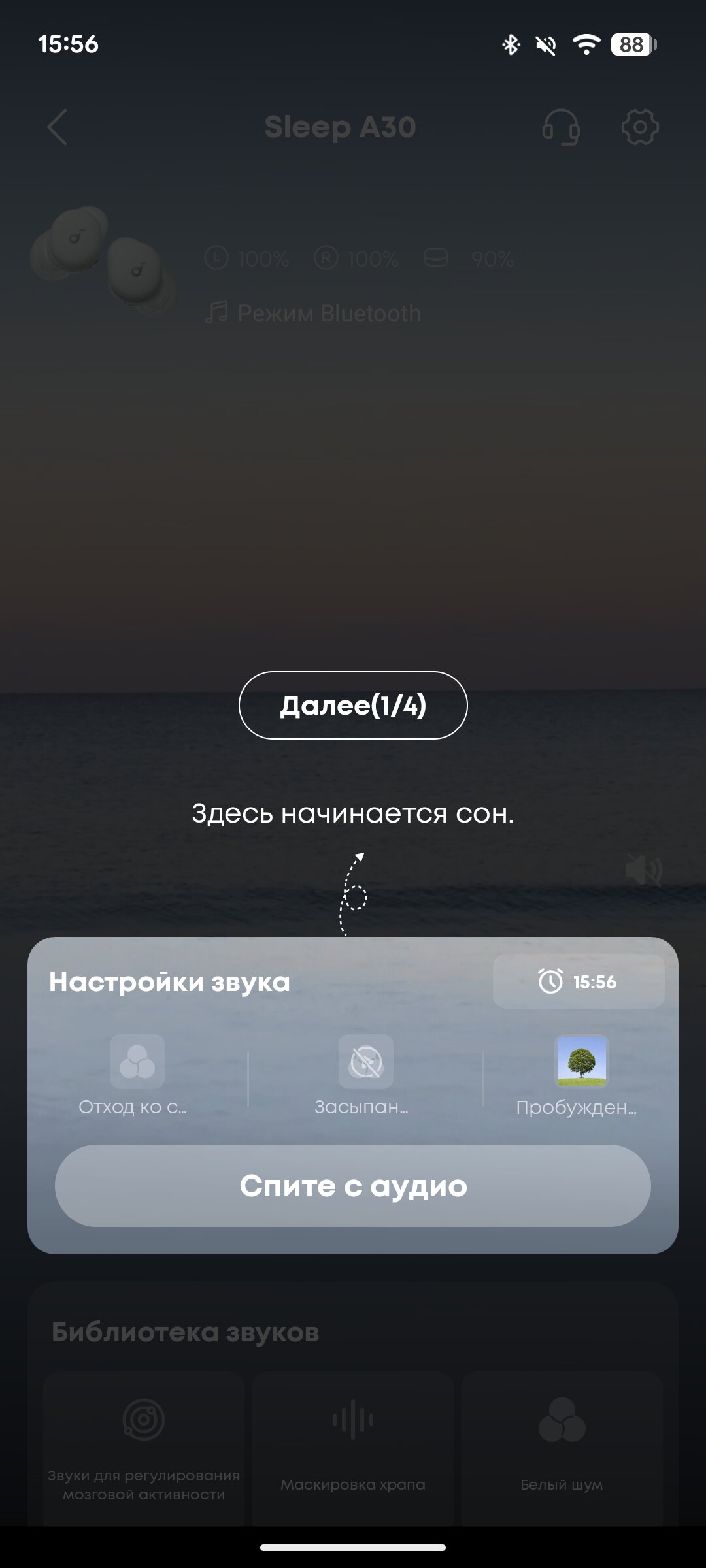 Дело в том, что когда пользователь переходит ко сну и надевает soundcore Sleep A30, наушники активируют систему активного шумоподавления, которая работает постоянно, избавляя человека от возможных раздражителей вокруг. Дополнительно пользователь по желанию может включить расслабляющие фоновые звуки, о которых я рассказал в предыдущем пункте.