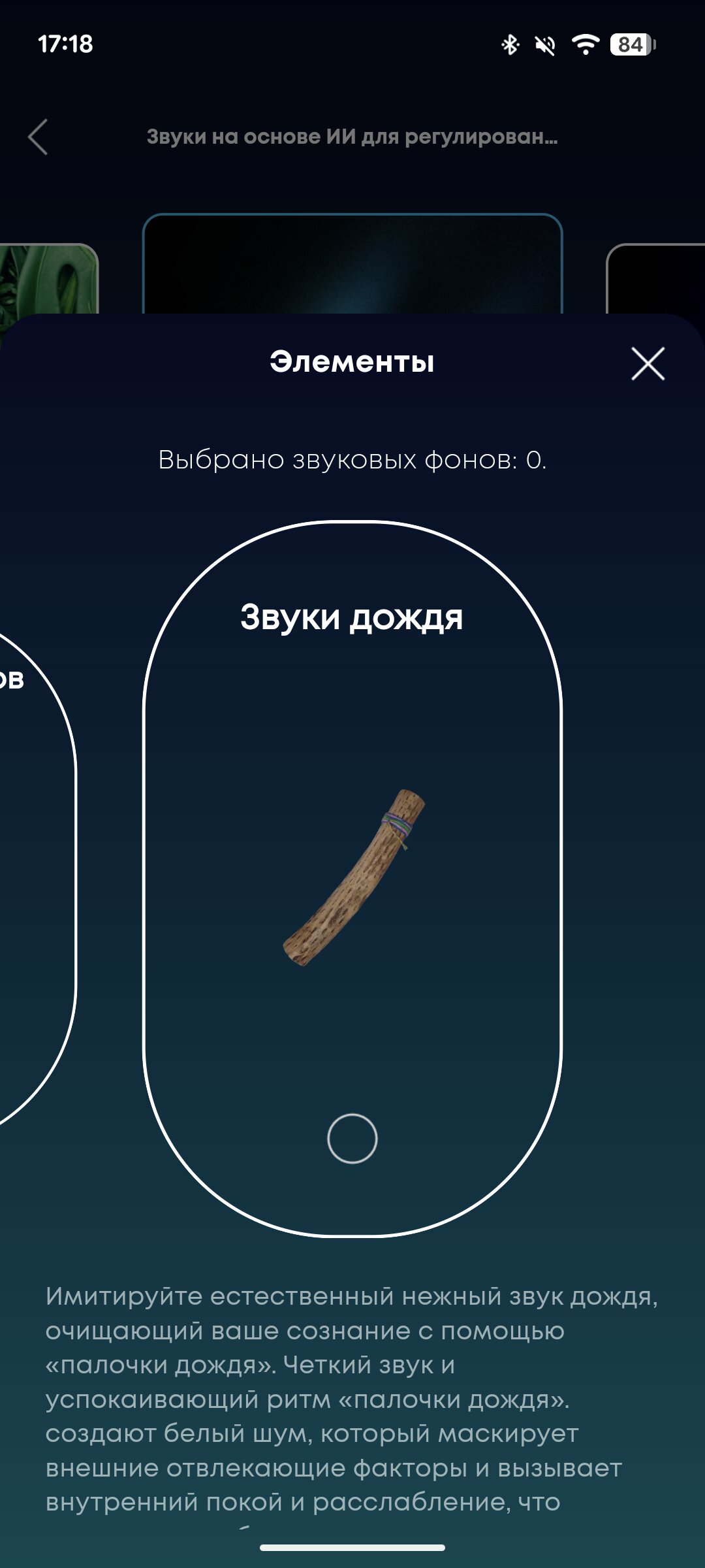 Кроме того, пользователь на своё усмотрение может эти «шаблоны» прокачивать, добавляя эффекты из раздела «Элементы». Мне, к примеру, очень понравился звук дождя, особенно в паре с шумом леса.