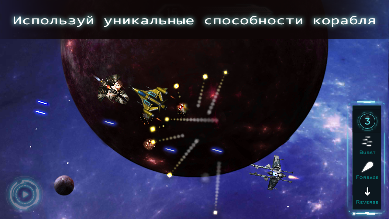 В Space Front не стоит рассчитывать на удачу. Холодный и расчетливый разум — вот оружие космического пилота. Ключ к победе — не быстрые рефлексы, а тактическое мышление. Стратегия боя — главное умение пилота будущего.