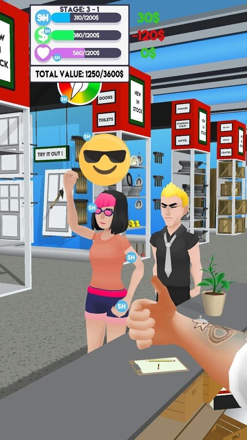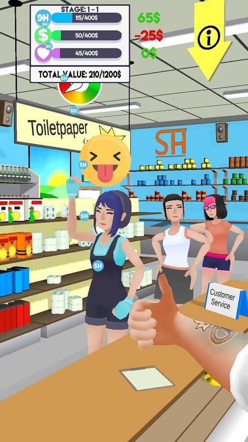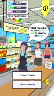 Вы можете высказать покупателям все, что думаете о них или конкретной ситуации. В игре простое управление и механика игры. При всей своей простоте игра очень затягивает. В игре отличная графика. Каждый посетитель, с которым вы будете общаться уникальный. За общение с клиентами вы будете получать зарплату, за которую вы сможете приобрести себе недвижимость, улучшить ваши способности и даже купить машину. Игра постоянно обновляется, в нее добавляются новые возможности и посетители с их проблемами.