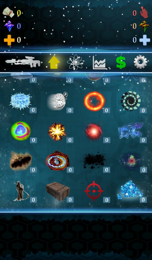 Простая игра, смысл которой заключается в накоплении, как можно большего количества очков(денег), путём нажатия на центральную панель и покупок различного вида оружия и улучшений, что приведёт к увеличению дохода.