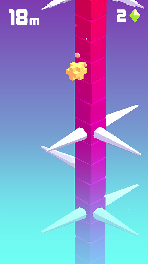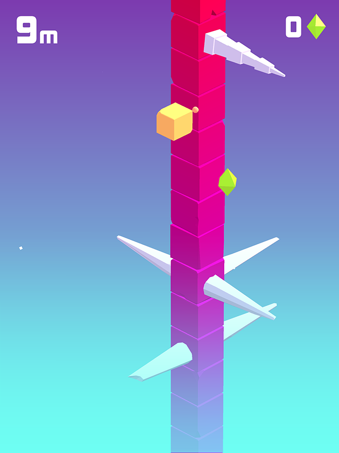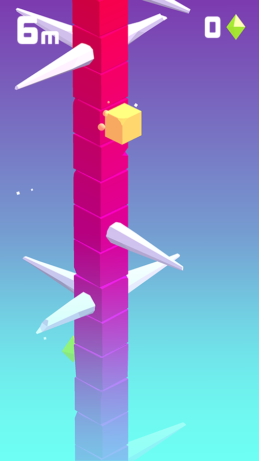 Spiky Trees — харкорная аркада, которая проверят вашу реакцию. Здесь игроку предстоит вовремя перемещать куб на одну из четырех сторон бесконечного прямоугольного параллелепипеда, минуя при этом препятствия. На первых уровнях сложность заключается лишь в том, что ловушки видны лишь на двух гранях прямоугольной трубы — остальные скрываются в «тени». По мере прохождения скорость сползания куба увеличивается, а ловушки начинают двигаться. По сложности Spiky Trees напоминает популярную ранее Geometry Dash. В игре можно собирать кристаллы, служащие ля приобретения скинов куба.