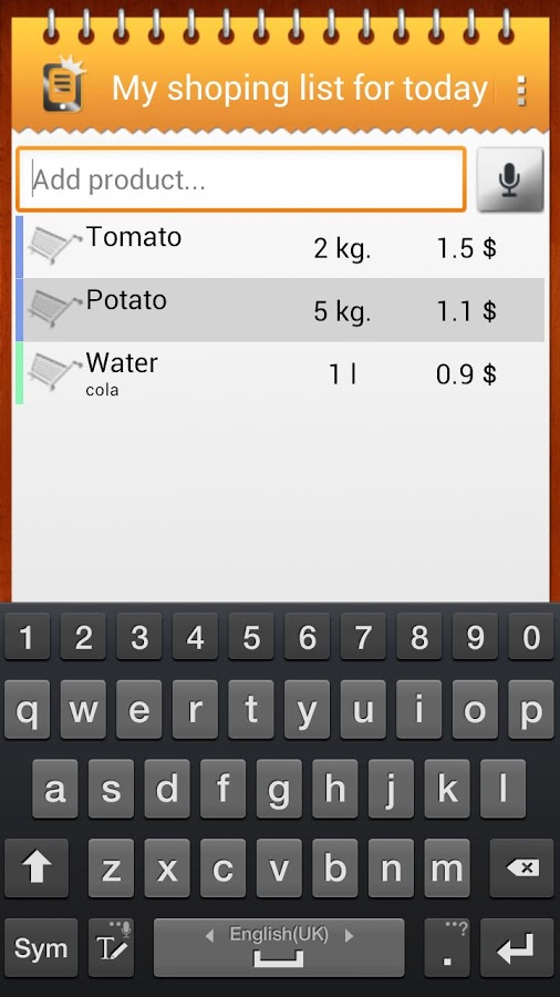 Приложение «Список покупок» поможет скупиться в магазине. Пользователи с легкостью смогут создавать списки покупок и управлять ими. Осуществляется поддержка голосового набора названий товаров и продуктов, использование категорий и копирования товаров из одного списка в другой. Реализована система различных валют. Вычеркивание товара из списка осуществляется одним касанием. Для удобства предусмотрена возможность держания экрана постоянно включенным, установка напоминаний, сортировка списка, добавление часто используемых товаров в «мой список», редактирование категорий и настройка шрифта. Также, пользователям доступно 6 тем оформления.