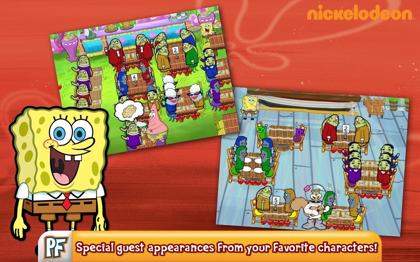 SpongeBob Diner Dash — тот, кто проживает на дне океана снова с нами. В данной игре мы будем помогать Спанч Бобу в его работе у Красти Крабса. Каждый день жители Боттом Сити хотят отведать Крабсбургеров. Посуды на это уходит очень много, и Спанч Бобу необходимо своевременно собирать и мыть ее. Давайте же поможем ему в этом. Начнется игра всего лишь с нескольких столиков, и с нескольких посетителей. Но это даже разогревом не назвать, по сравнению с тем, что происходит далее. Потом нас будут посещать целые толпы, и справляться нужно уметь даже за несколько секунд. Впрочем, это очень увлекает.