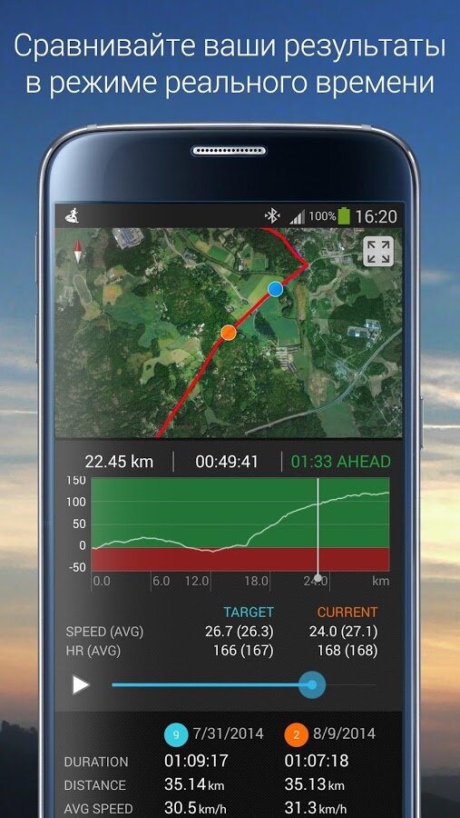 - полная детализация всех сведений: от количества сожжённых калорий до средней скорости и времени прохождения участка пути