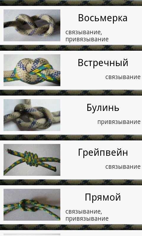 — основные узлы (узлы для привязывания, связывания веревок и т.д.)