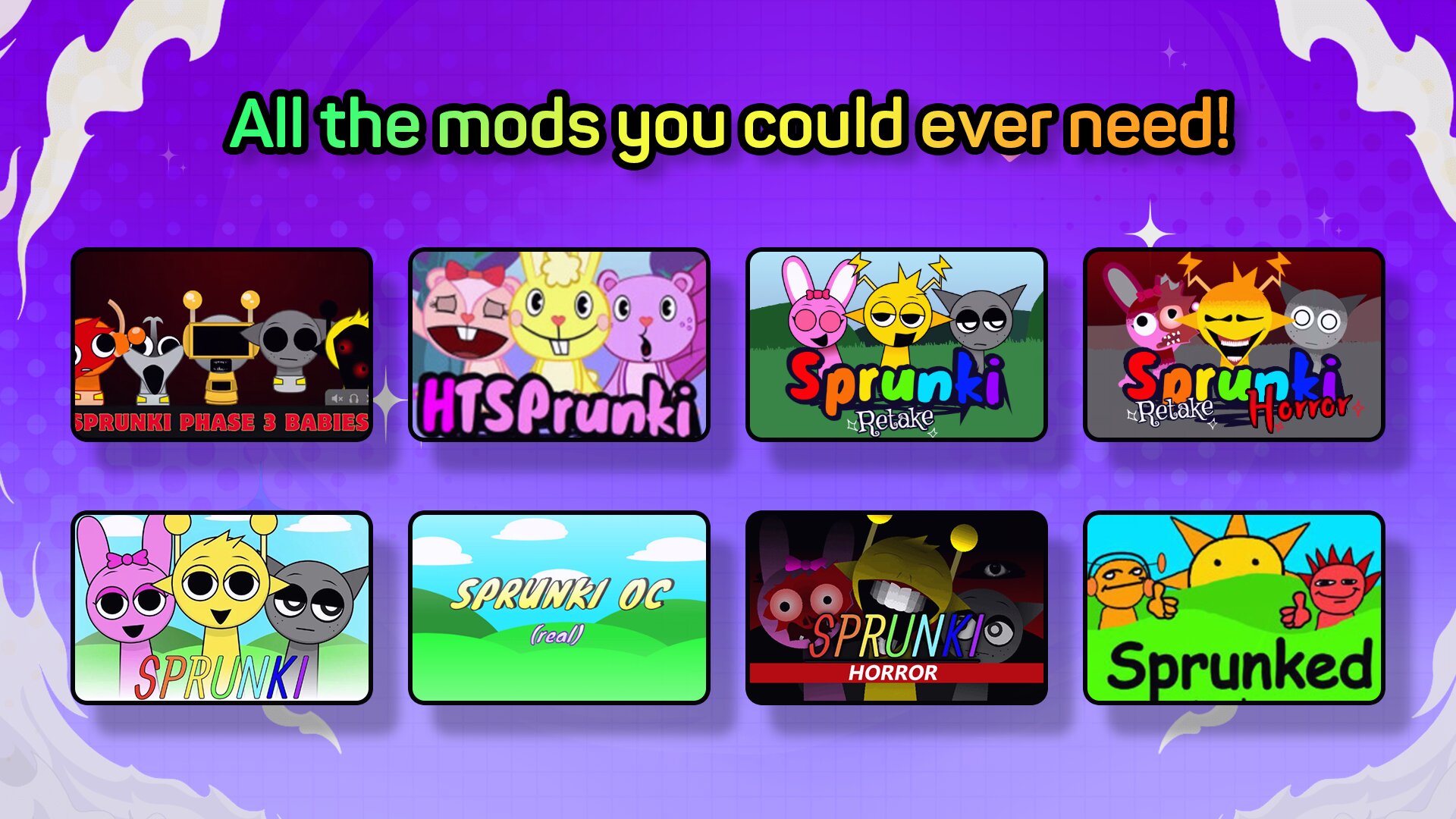 Игра предлагает невероятное разнообразие благодаря системе модов – дополнительных наборов, каждый из которых представляет собой новую музыкальную вселенную. Исследуй фазы от Sprunki Phase 3 до загадочного Pyramixed, каждая со своей атмосферой, набором персонажей и палитрой звуков. Для любителей острых ощущений есть особый режим: перетащи черную кнопку на персонажа, чтобы активировать хоррор-тему с леденящими душу семплами и жутковатой графикой.