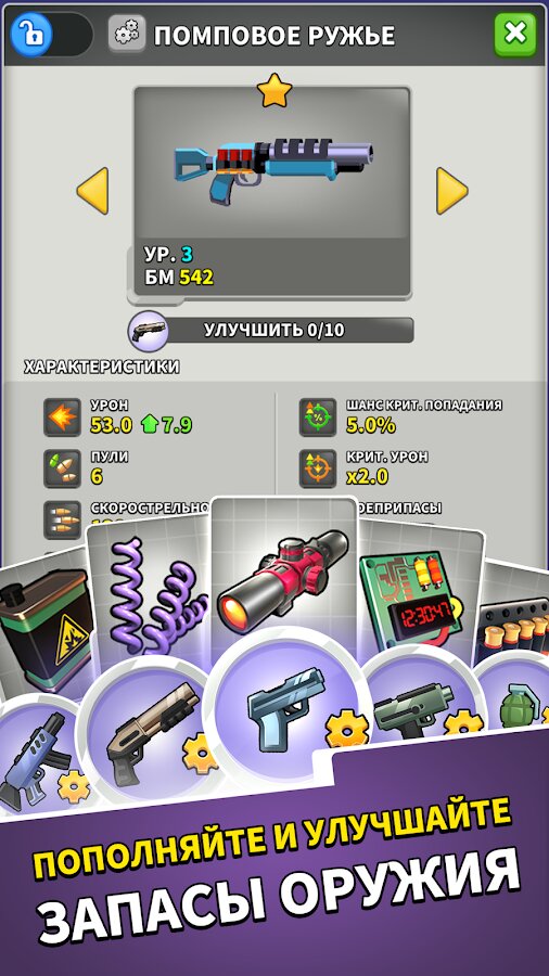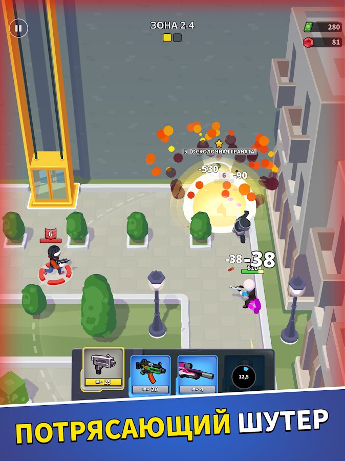 - Ваш основной аргумент в любом бою — более 30 видов оружия, которое вы можете холить, лелеять и улучшать. Это пистолеты, дробовики, пистолеты-пулеметы и многое другое. Зарабатывайте деньги за прохождение уровней и достигайте важных целей игры, чтобы расширить свой арсенал и найти оружие по душе. Настройте его в мастерской и создайте нечто невероятное, что будет вселять ужас в сердца ваших врагов. А ведь в игре еще есть гранаты...