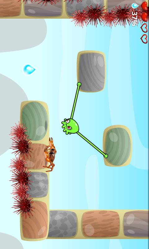 Играем мы маленьким зелёным существом, которое как человек-паук может крепиться к стенам собственной слизью. Нашим заданием является добраться до домика этого существа, минуя всевозможные опасности и препятствия, а также избегая близких встреч с врагом. К сожалению, никаких интересных особенностей кроме персонажа игра не имеет, поэтому может очень быстро надоесть.