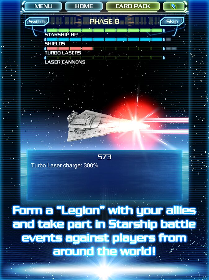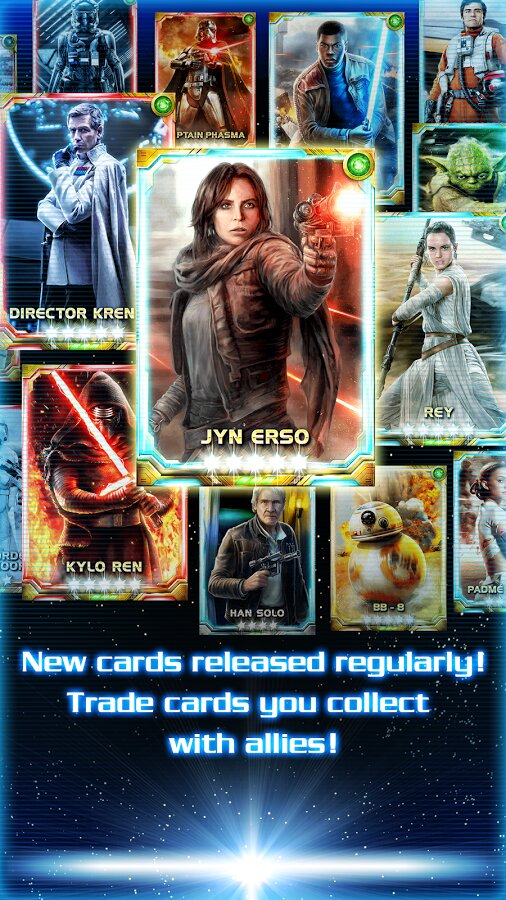 - Коллекционируй и стратегически планируй состав своей коллоды, в которой представлены персонажи и транспортные средства из всех эпизодов Звездных войн, с первого по шестой.