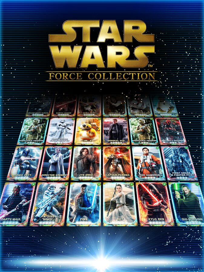 Star Wars Force Collection — собери более 400 карт с персонажами Звездных войн и открой специальные возможности для подготовки к битве. Как только твоя колода собрана, вступай и побеждай противников в стратегических сражениях, тем самым продвигаясь вверх по уровням ордена Джедаев или Ситхов.