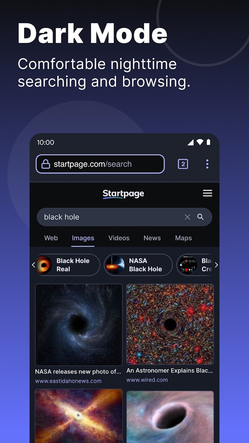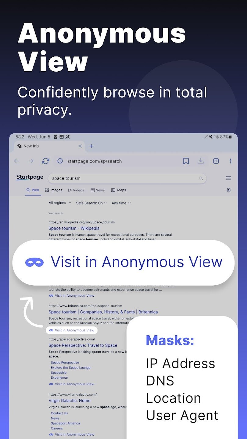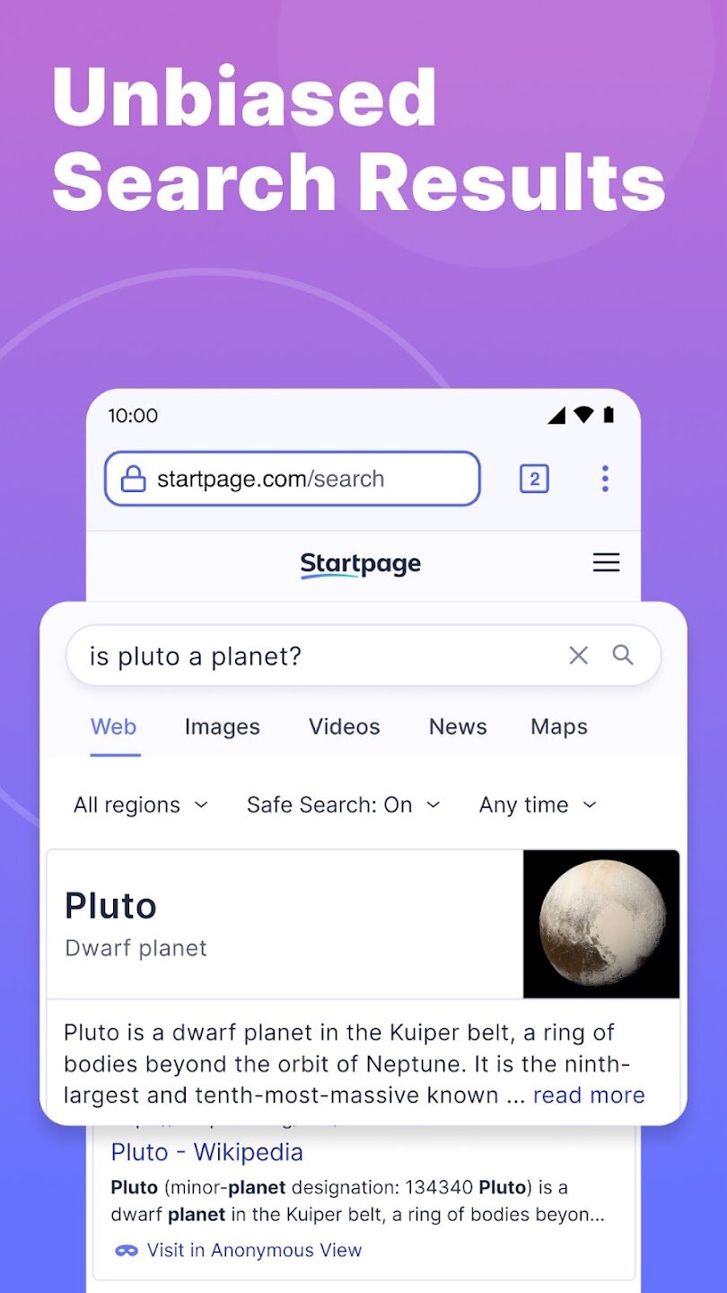 Startpage Private Browser — это бесплатное мобильное приложение-браузер, разработанное для безопасного и конфиденциального поиска в Интернете. Оно интегрирует надежную поисковую систему Startpage в качестве поисковой системы по умолчанию, гарантируя, что при каждом запросе удаляются ваши личные данные и IP-адрес. Это обеспечивает доступ к объективным, не профилированным результатам поиска, включая панели знаний, карты, видео и новости, без отслеживания вашей истории или включения таргетированной рекламы.