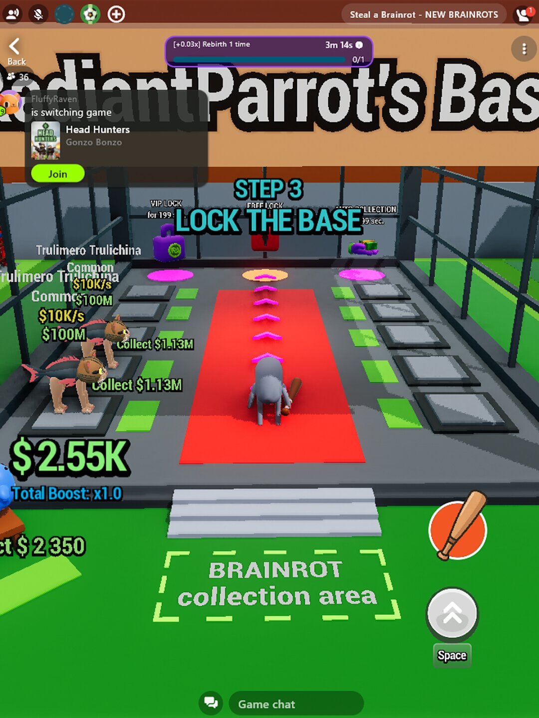 Steal the Brainrot: Asset Hunter предлагает вам выйти на дикую арену и поймать неуловимых существ Brainrot, когда они пересекают центральную линию. Ваша основная цель — схватить их и вернуться на свою базу, зарабатывая монеты за каждую секунду, пока Brainrot остается в вашем владении. Однако суть игры сводится к простому, захватывающему вопросу: зачем просто собирать, когда можно украсть? Вы должны проникнуть на базы соперников, ловко избегать их ловушек и уносить их самые ценные активы, одновременно защищая свои собственные запасы от других игроков.