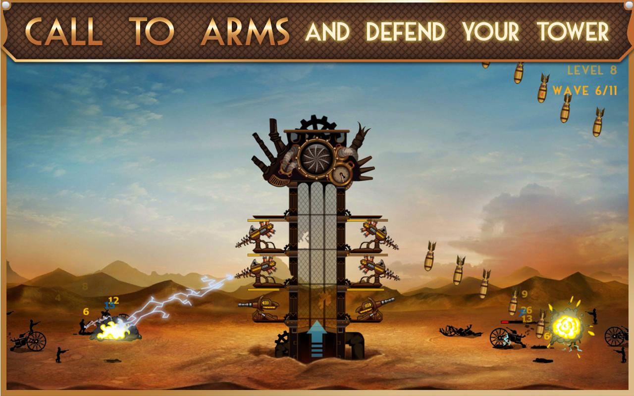 Steampunk Tower — игра из серии оборона башен, ранее вышедшая на ПК и в социальных сетях и вот теперь оценить ее могут и владельцы мобильных устройств. Игра выполнена в стиле стим панк, что безусловно ново для стратегий этого жанра, кроме того разработчики реализовали совершенно новый подход к геймплею. В центре экрана расположена башня, которую вам и предстоит защищать, добавляя на этажах оборонительные орудия. По мере прохождения количество этажей растет, возрастает и количество врагов, нападающих с двух сторон, так что тактика занимает не последнее место.