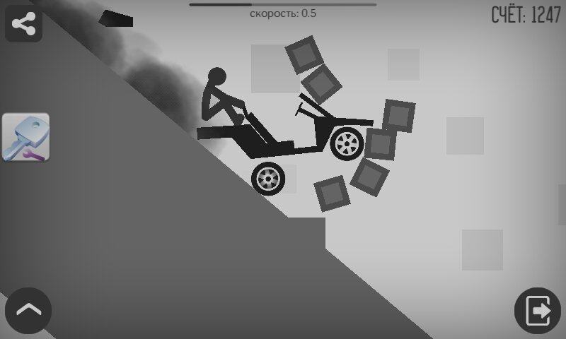 Stickman Dismounting — в этой игре вам нужно просто разбивать стикмена, ломать ему кости. Также можно ломать транспорт. За это вам начисляются очки, которые перечисляются в монеты. В этой игре есть несколько локаций, транспорт: мотоцикл, джип, спортбайк, спорткар и т.д.