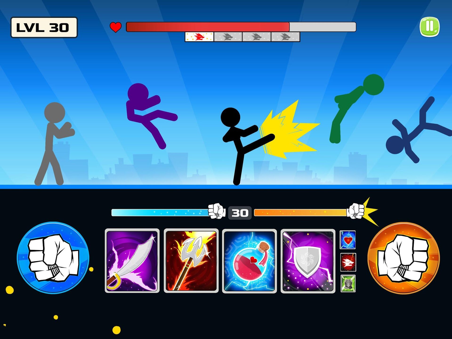 Stickman Fighter: Mega Brawl погружает вас в хаотичные сражения, где выживает сильнейший. Сражайтесь против полчищ противников, используя молниеносные комбинации ударов и смертоносное оружие. Каждая битва – это испытание на реакцию и стратегию, где промедление грозит разгромом. Яркие визуальные эффекты и плавная анимация делают каждый бой зрелищным.