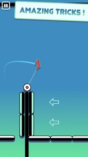 Помогите Стикмену пройти уровень за уровнем, сопроводите его в этом опасном путешествии. Ему потребуется пройти через большое количество испытаний, совершать множество прыжков на батуте, бежать по различным поверхностям, складываться в клубок, цепляться на веревки, кружиться на ней, выполнять невероятные трюки и кульбиты. Если коснуться экрана в нужный момент, герой зацепится за канат, как паук за паутину. С помощью этого же каната он преодолеет высокие препятствия, глубокие пропасти. При отпускании пальца Стикмен совершит головокружительный прыжок. С каждым уровнем трюки становятся все удивительнее и удивительнее.