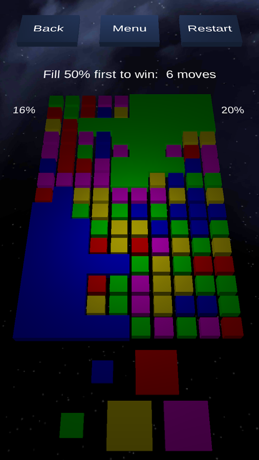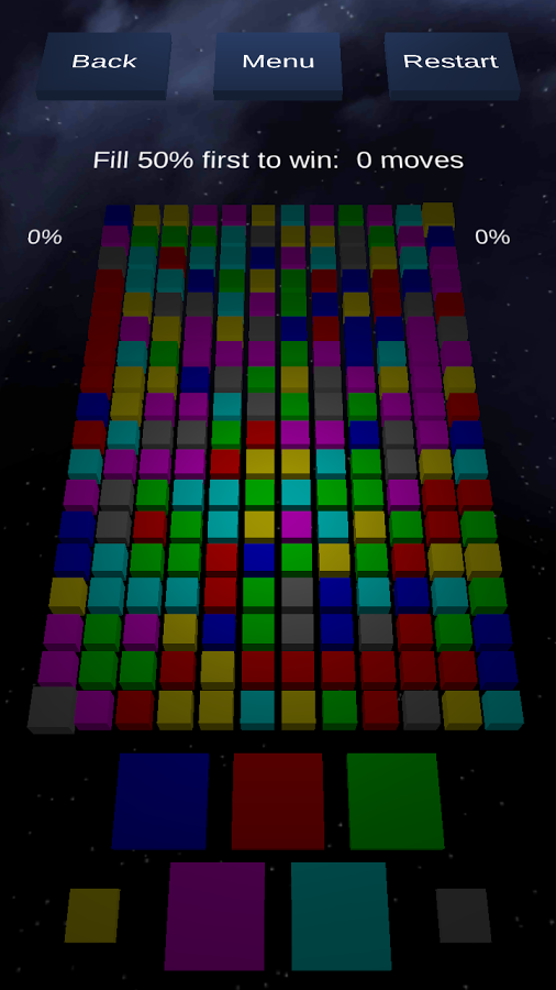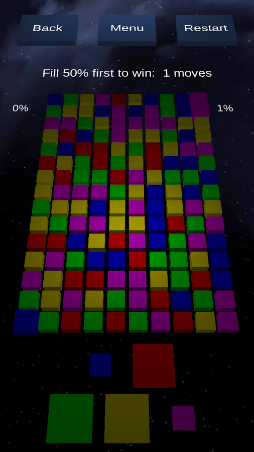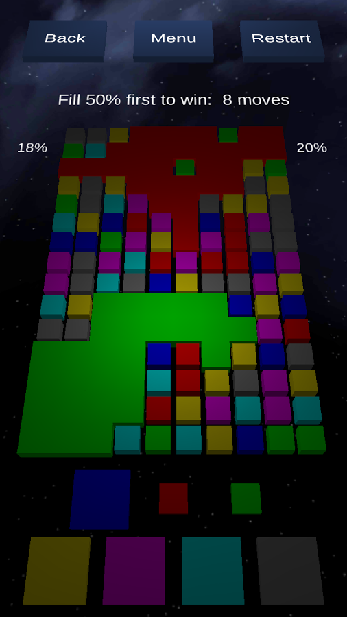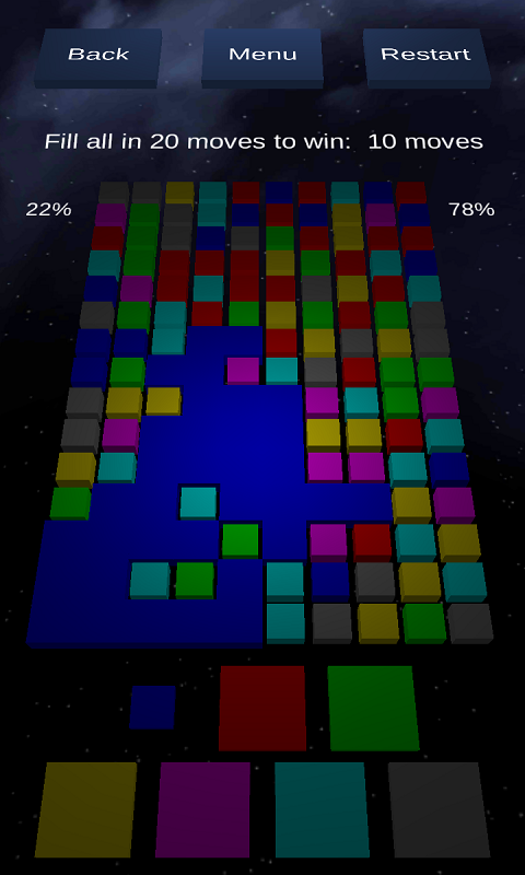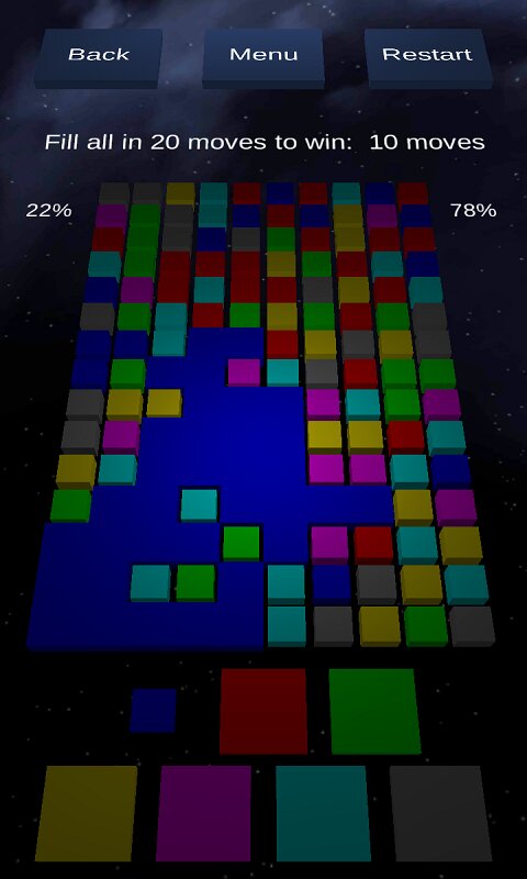 Strategy of Colors это новая логическая игра в 3D которая создана при помощи Unity. Поле игры генерируется случайным образом и содержит ряд цветных кубиков. Игрок начинает игру в левом нижнем углу с одного куба, в каждом шагу игрок должен выбрать один цвет для увеличения его пространство ...