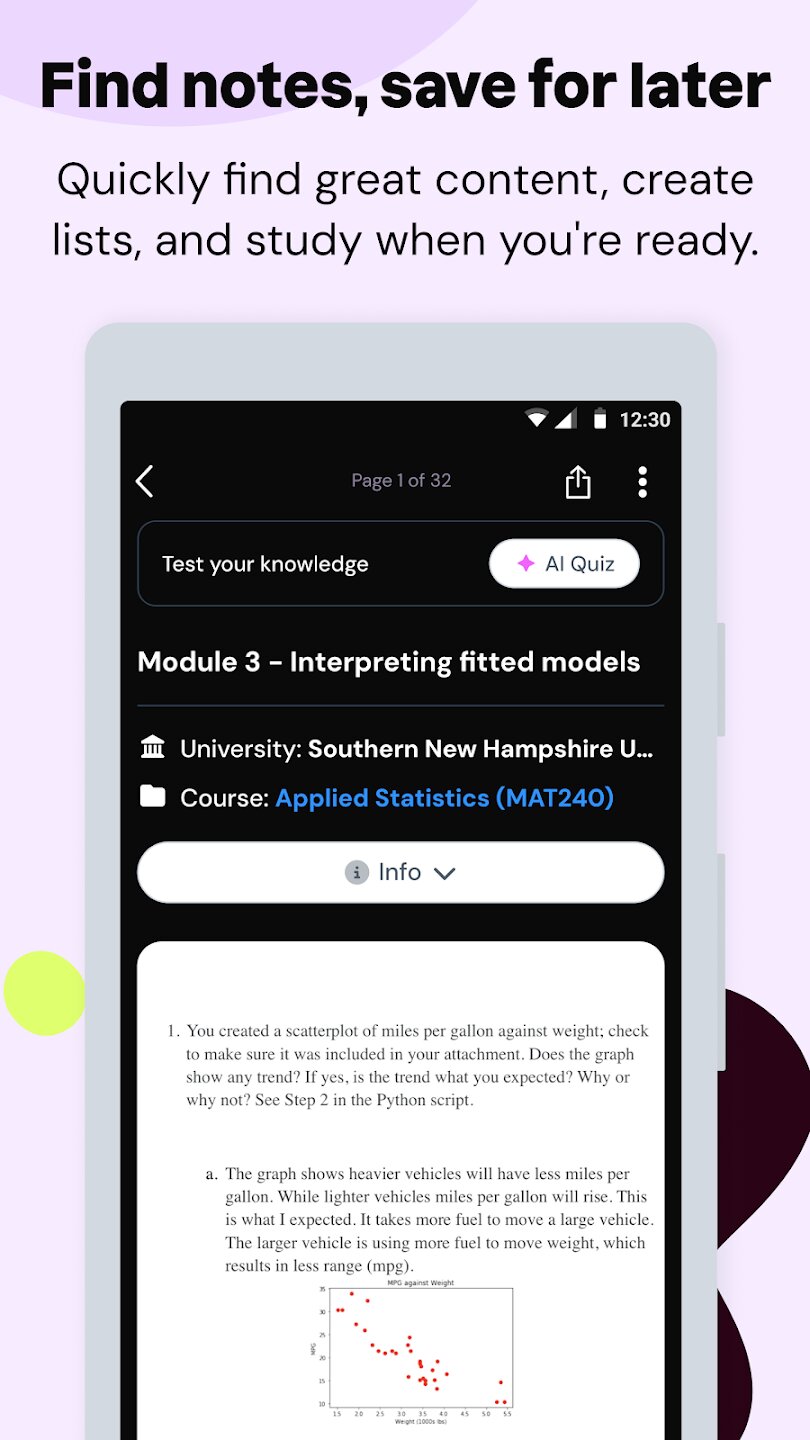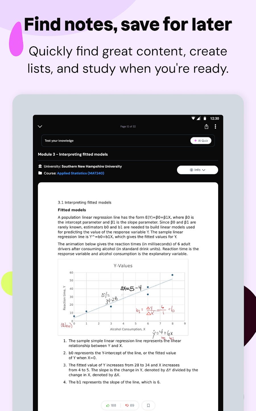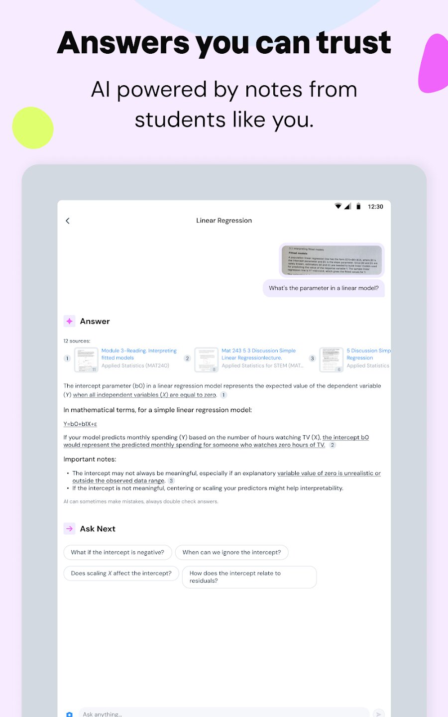 Приложение предлагает комплексный подход к обучению: от решения сложных математических задач до анализа литературных произведений. Встроенный ИИ-помощник объясняет темы шаг за шагом, а функция распознавания через камеру мгновенно решает примеры из учебников. Studocu превращает процесс подготовки к экзаменам в увлекательное и эффективное занятие.