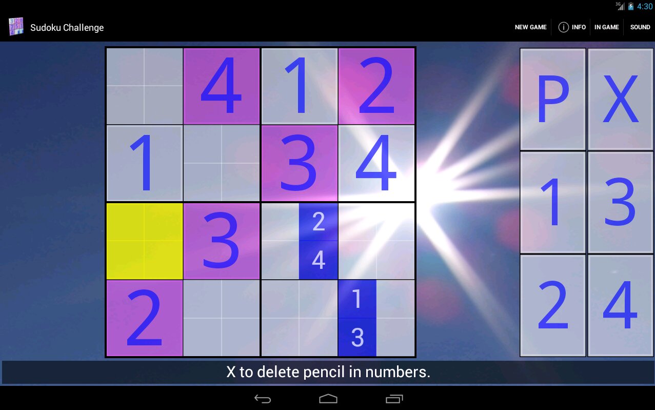 Sudoku Challenge HD — еще один вариант головоломки Судоку для вашего Android-смартфона. Правила как у классического судоку — заполните игровое поле цифрами от 1 до 9 так, чтобы в каждой отдельной строке, отдельном столбце и в малых блоках 3х3 клетки цифры не повторялись. В игре предоставлена возможность заполнять клетки в режиме черновика, который облегчают решение головоломки. Эта версия игры подойдет не только для смартфонов, но и для планшетов.