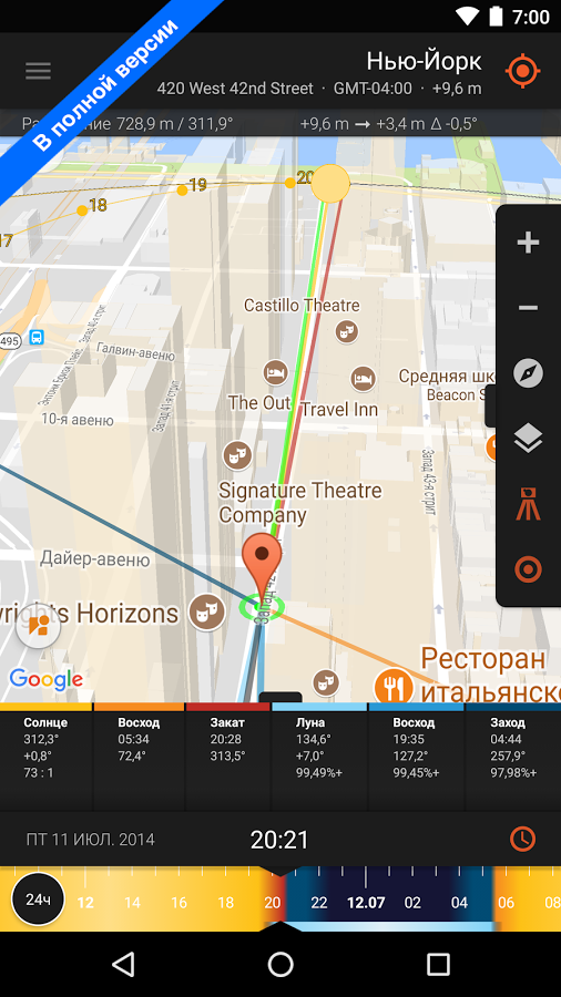 - Визуализации и планирования золотых часов, режимного времени и каждого восхода и заката солнца, восходов и заходов Луны