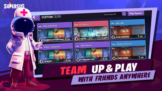 - 👬 Играйте вместе с друзьями. Здесь можно получить море удовольствия от командной работы с друзьями — просто создайте собственную комнату, настройте её параметры и играйте в любое время и в любом месте.