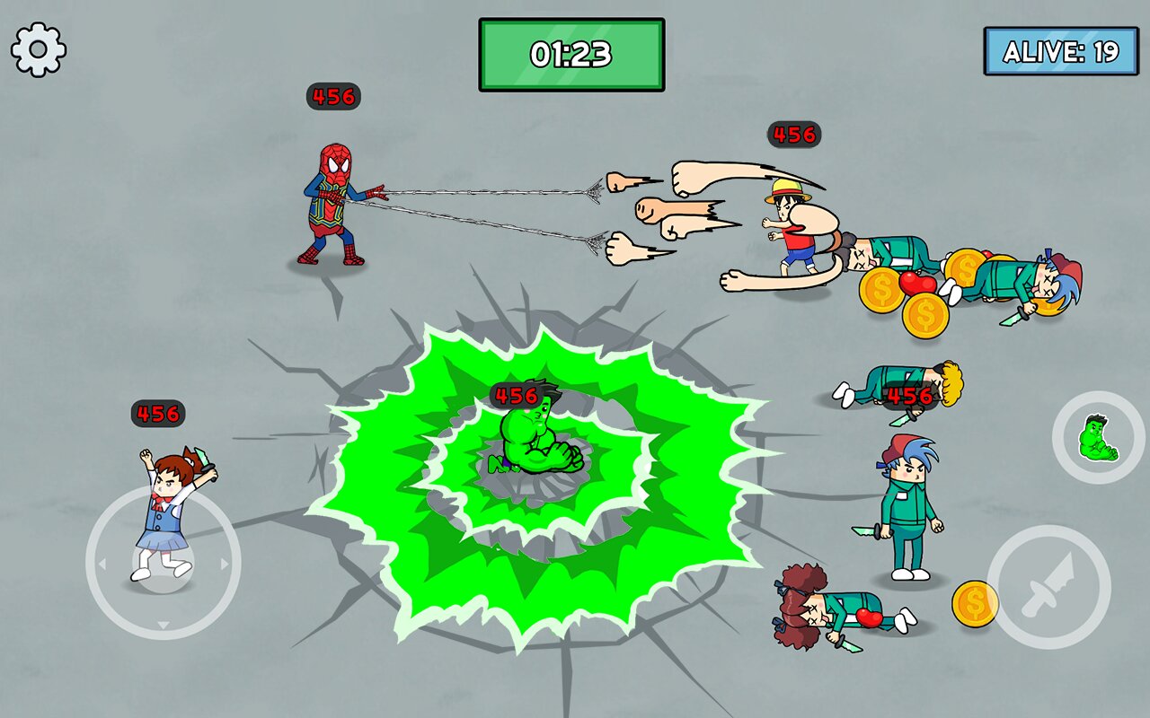 Survival 456 With Super Hero – это захватывающий и интересный 2D симулятор по мотивам популярного сериала «Игра в кальмара» с легендарными супергероями.