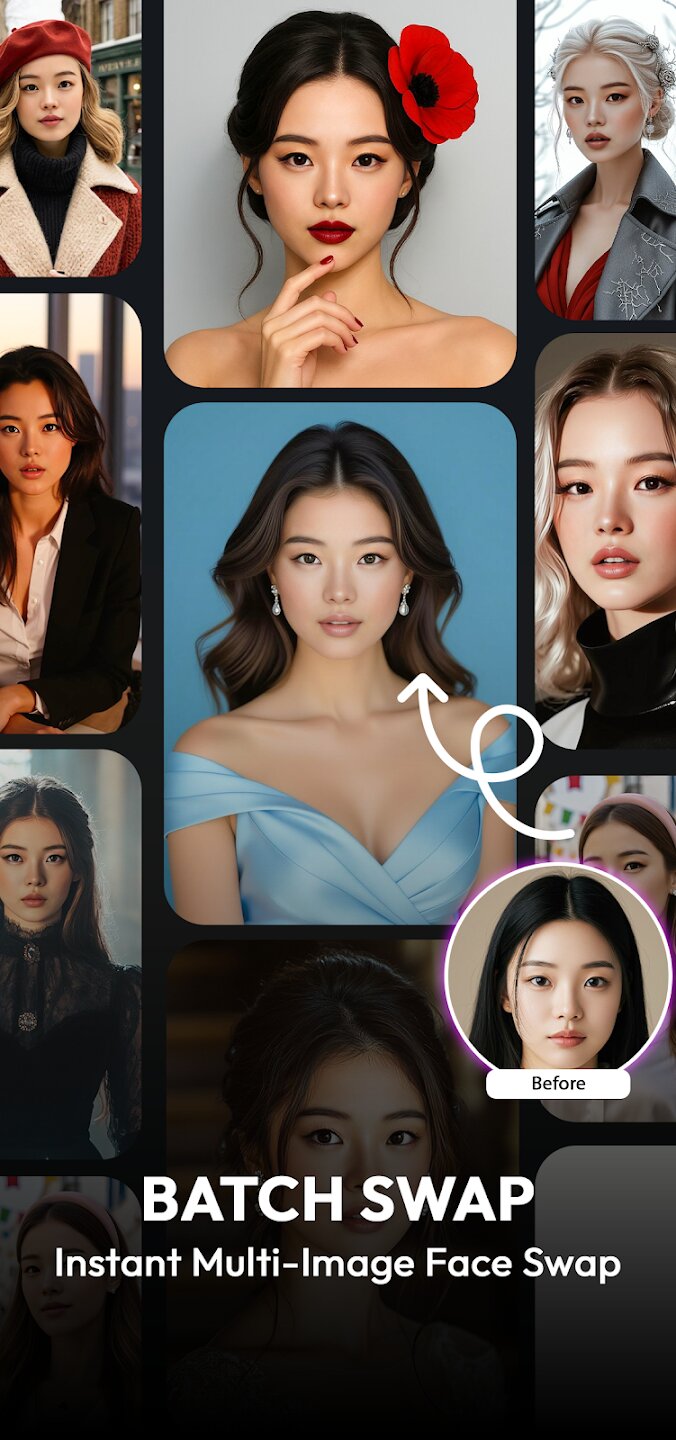 - Пакетная замена лиц для эффективной замены лиц на нескольких изображениях.