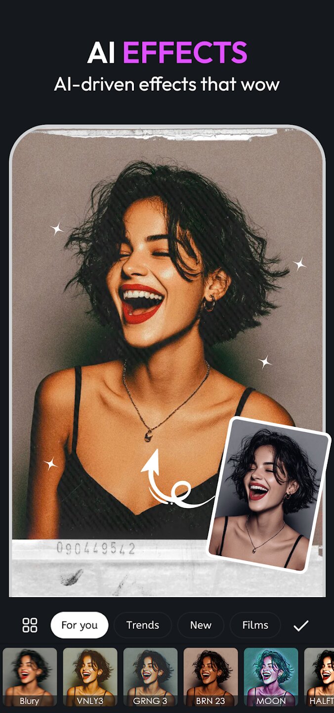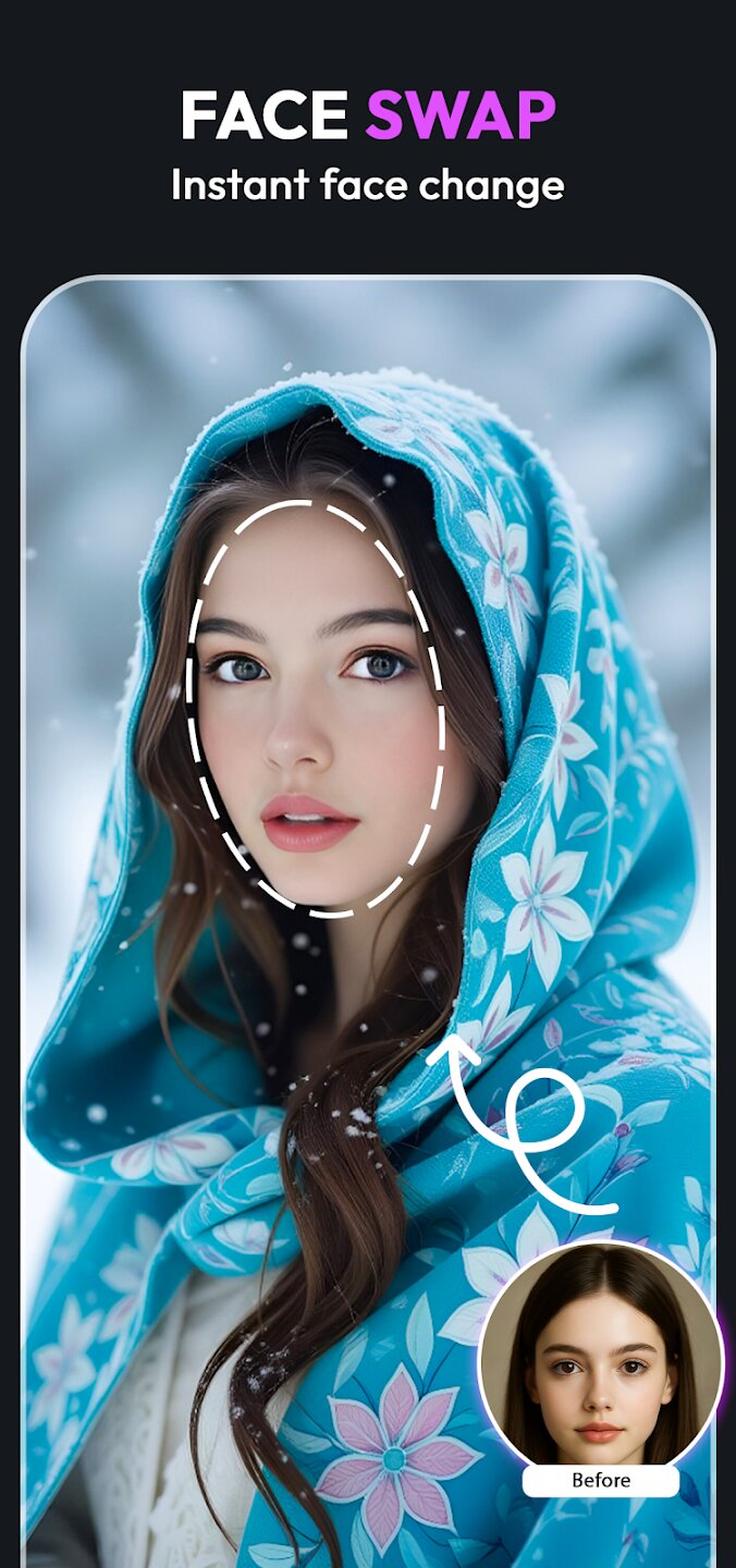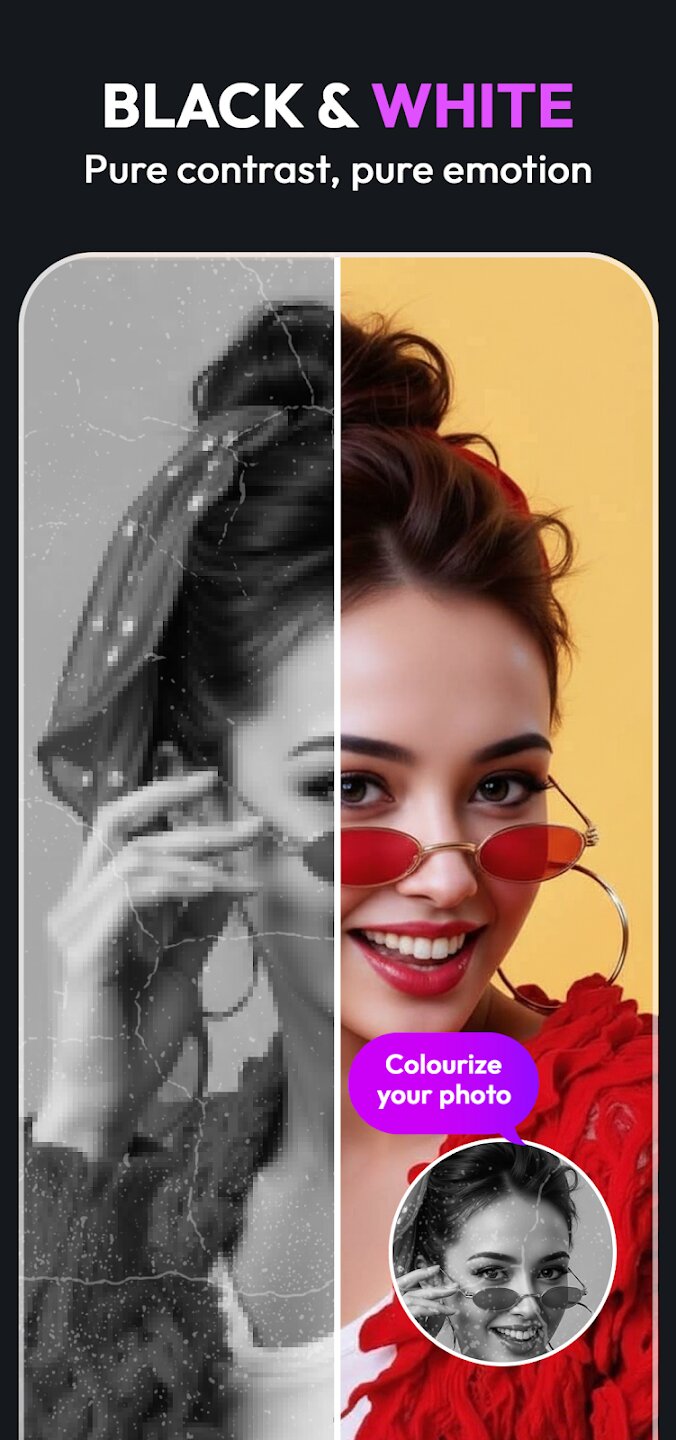 Основная сила приложения заключается в его комплексном наборе инструментов искусственного интеллекта. Вы можете вдохнуть новую жизнь в старые, размытые или поцарапанные фотографии, восстановив их четкость и детали, или мгновенно удалить и заменить фон для фотографий продуктов и творческих проектов. Функция пакетной замены лиц позволяет эффективно редактировать несколько изображений, что делает приложение идеальным для создания мемов или забавных групповых фотографий, а интеллектуальный инструмент окрашивания плавно преобразует монохромные изображения в яркие, красочные фотографии.