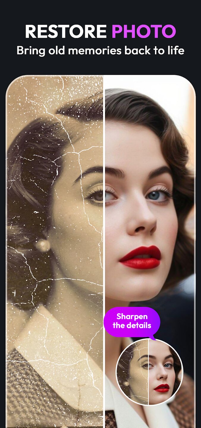 - AI Image Restore для восстановления старых, размытых или поврежденных фотографий.