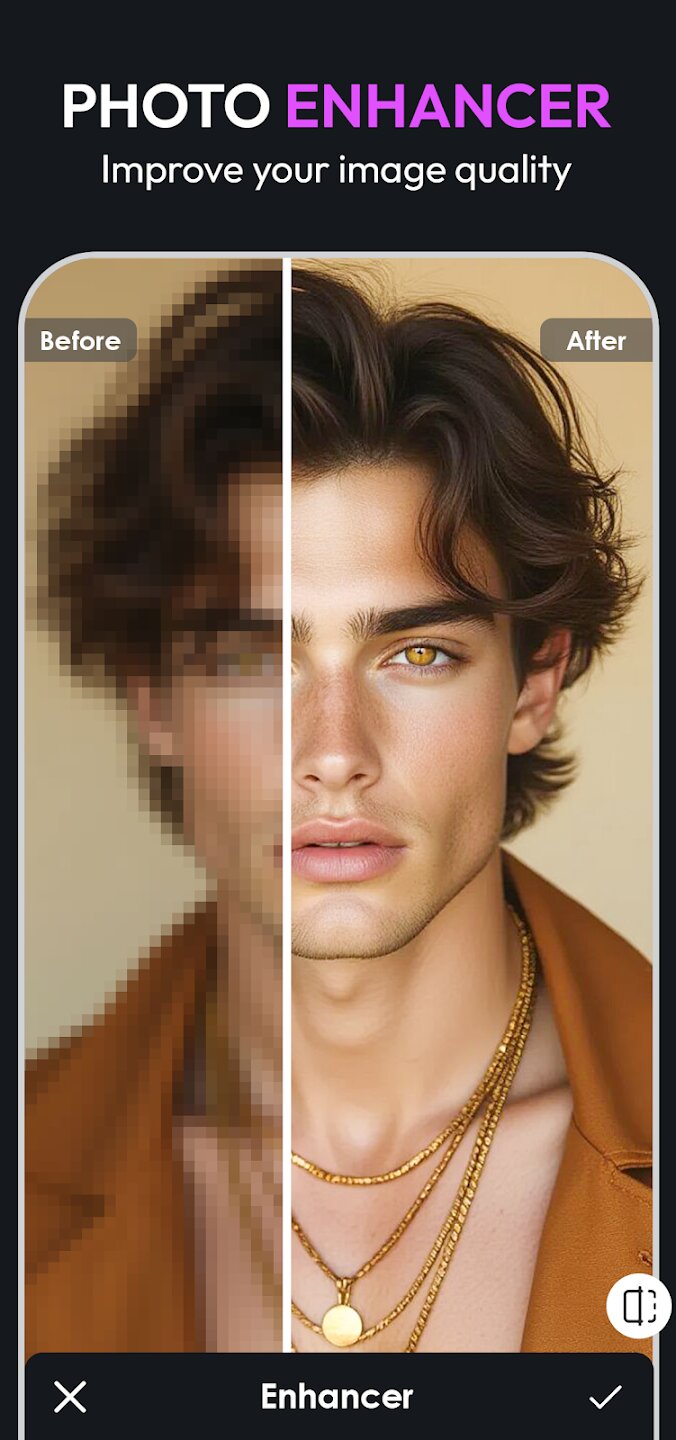 - AI Image Enhance для повышения четкости деталей и улучшения освещения/цветов.
