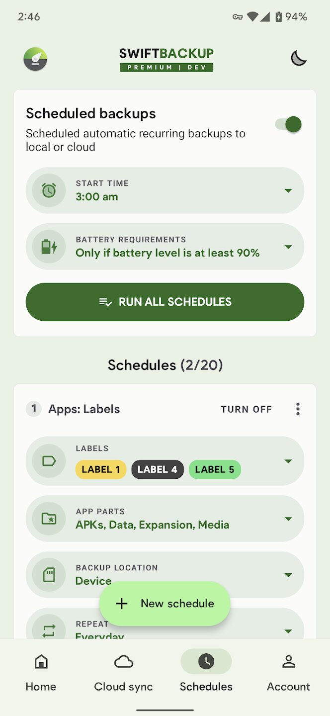 - Премиум-функции: запланированное резервное копирование, облачное резервное копирование для приложений, настраиваемые конфигурации.