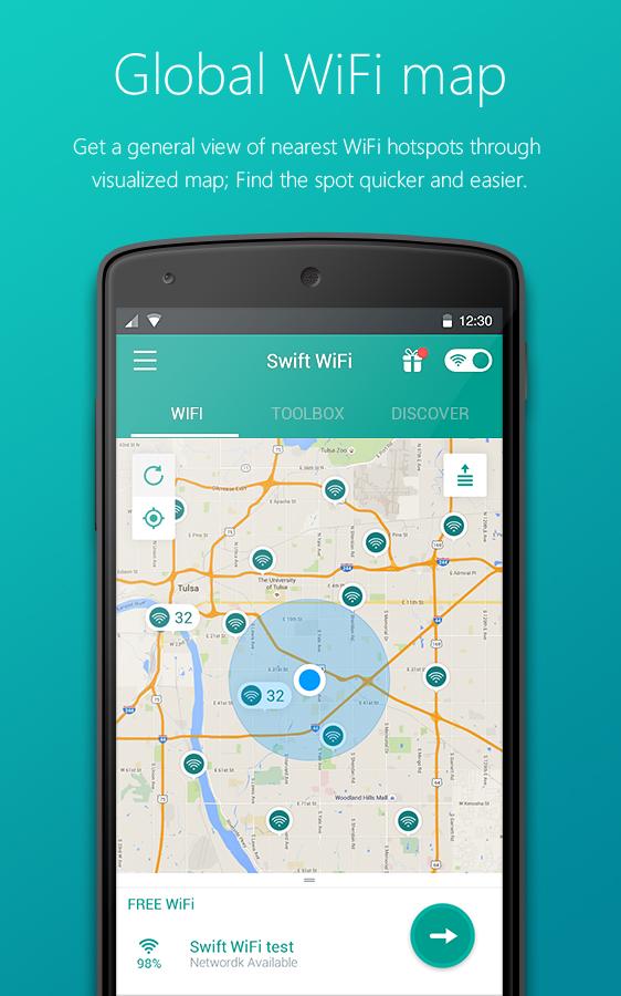 Swift WiFi — это платформа для совместного использования WiFi, которая уже имеет миллионы присоединившихся пользователей. Мы верим, что всякий будет иметь возможность пользоваться бесплатным и быстрым WiFi в любом месте и в любое время, просто начав делиться им. Мы быстро расширяемся и очень быстро увеличиваем число бесплатных точек доступа WiFi. Если Вы пока не нашли бесплатную точку доступа WiFi, не волнуйтесь, это временно. Просто попробуйте изменить место или предоставить нам немного больше времени для увеличения нашей базы данных, и Вы будете удивлены, от того что Вы увидите.