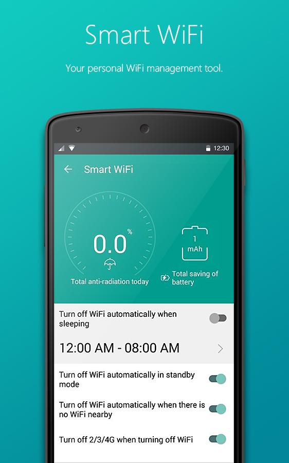 Swift WiFi ежедневно снижает суммарное излучение и оптимизирует энергопотребление вашего смартфона. Метод прост: когда вы спите, поблизости нет Wi-Fi или телефон находится в режиме ожидания, Wi-Fi автоматически отключается. Или же вы можете просто установить время, когда вы хотите, чтобы Wi-Fi отключался.