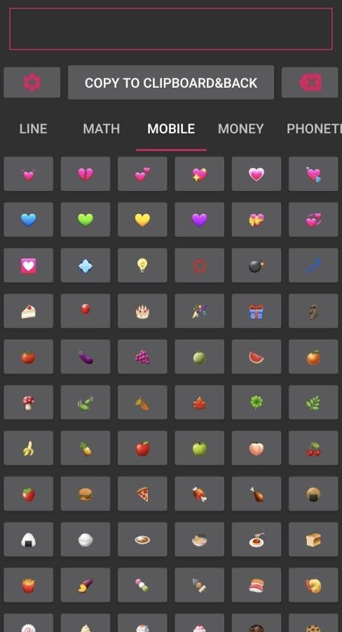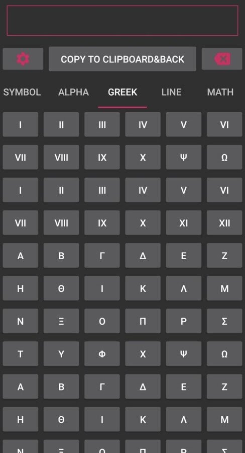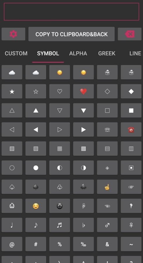 Symbols — приложение для набора красивых символов (валюта, римские, стрелки, линии, математика, блоки, японский, смайлики, и т.д.). Программа включает до 400 символов. Вы сможете скопировать символ в буфер обмена и вставить в любое другое приложение.