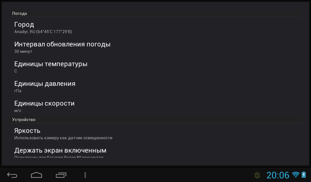 Если на вашем устройстве нету датчика освещенности, но есть камера, желательно фронтальная, включите в настройках регулировку яркости используя камеру — освещенность будет измеряться камерой каждые 30 секунд. Если вы запускаете приложение без подключенного зарядного устройства с этим режимом — время автономной работы сократиться.