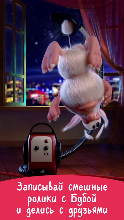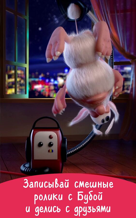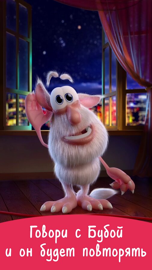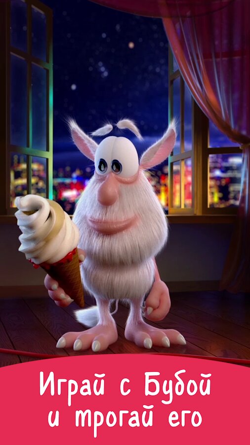 Наша игра позволит детям научится заботится о ком-то. Ведь Бубу нужно кормить, поить, укладывать спать, разговаривать и играть с ним чтобы он не заскучал. Если вы боитесь, что ваш ребенок не справится с домашним животным и не будет о нем заботится, то скачайте ему это приложение. С Бубой можно не только разговаривать, но и взаимодействовать. Если буба ведет себя хорошо погладьте его по голове или животику – и он начнет мурлыкать словно кот. Домовенок Буба очень милый и веселый, обязательно понравится ребенку. Переворачивай свой телефон и тряси его что бы увидеть, как крутится и прыгает Буба по всему экрану. А также делает простое невероятные трюки в воздухе. Играйте вместе с Бубой в веселые аркадные игры.