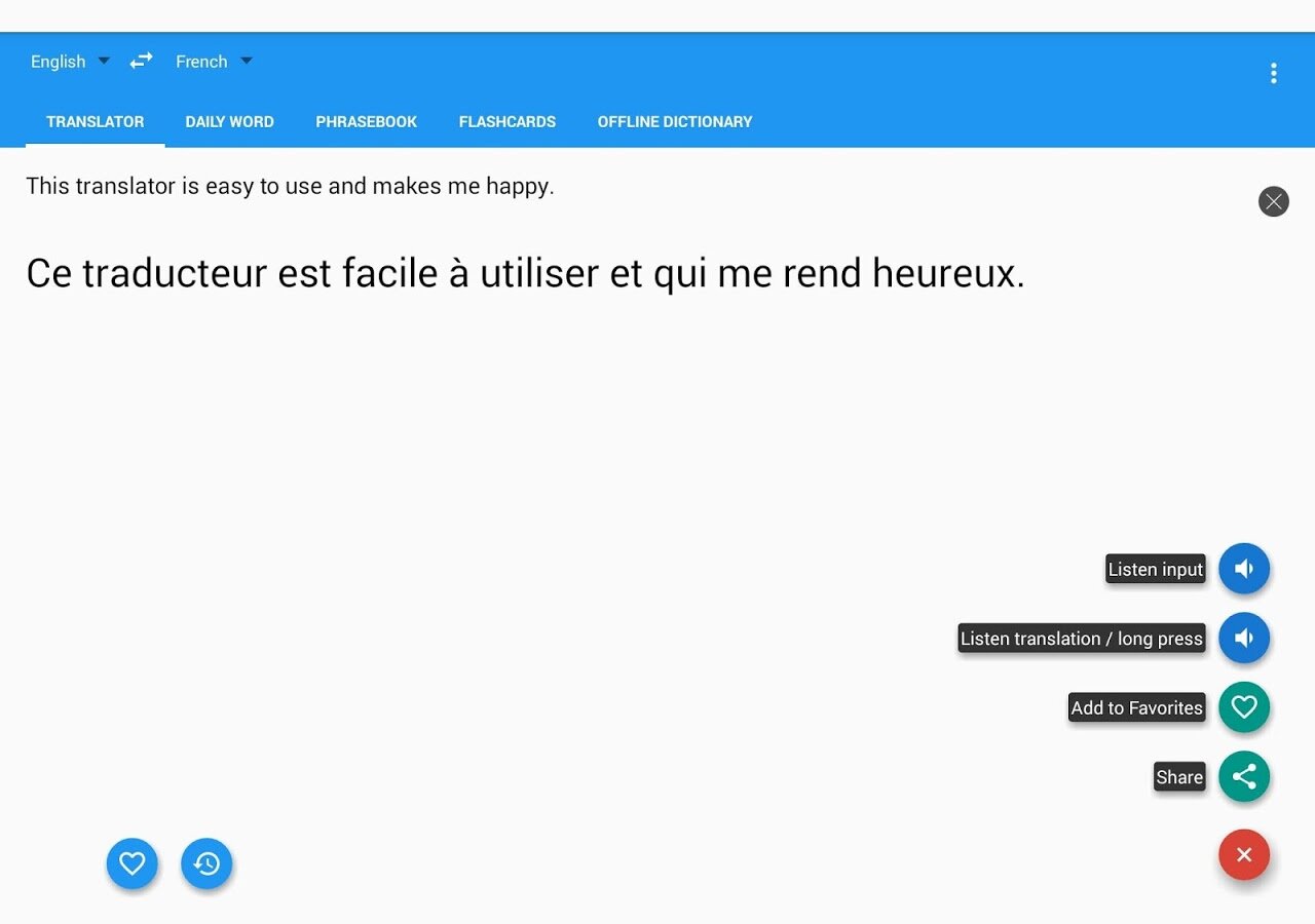 Говорящий Переводчик/Словарь — это программа для перевода русских слов на французский, и наоборот. Никогда не знаешь, когда придется столкнуться с французским языком, особенно если Вы проводите много времени в путешествиях или туризме. Большой набор словарей и фраз порадует каждого путешественника. Не требует подключения к Интернету, может переводить e-mail сообщения, смс, аудио.